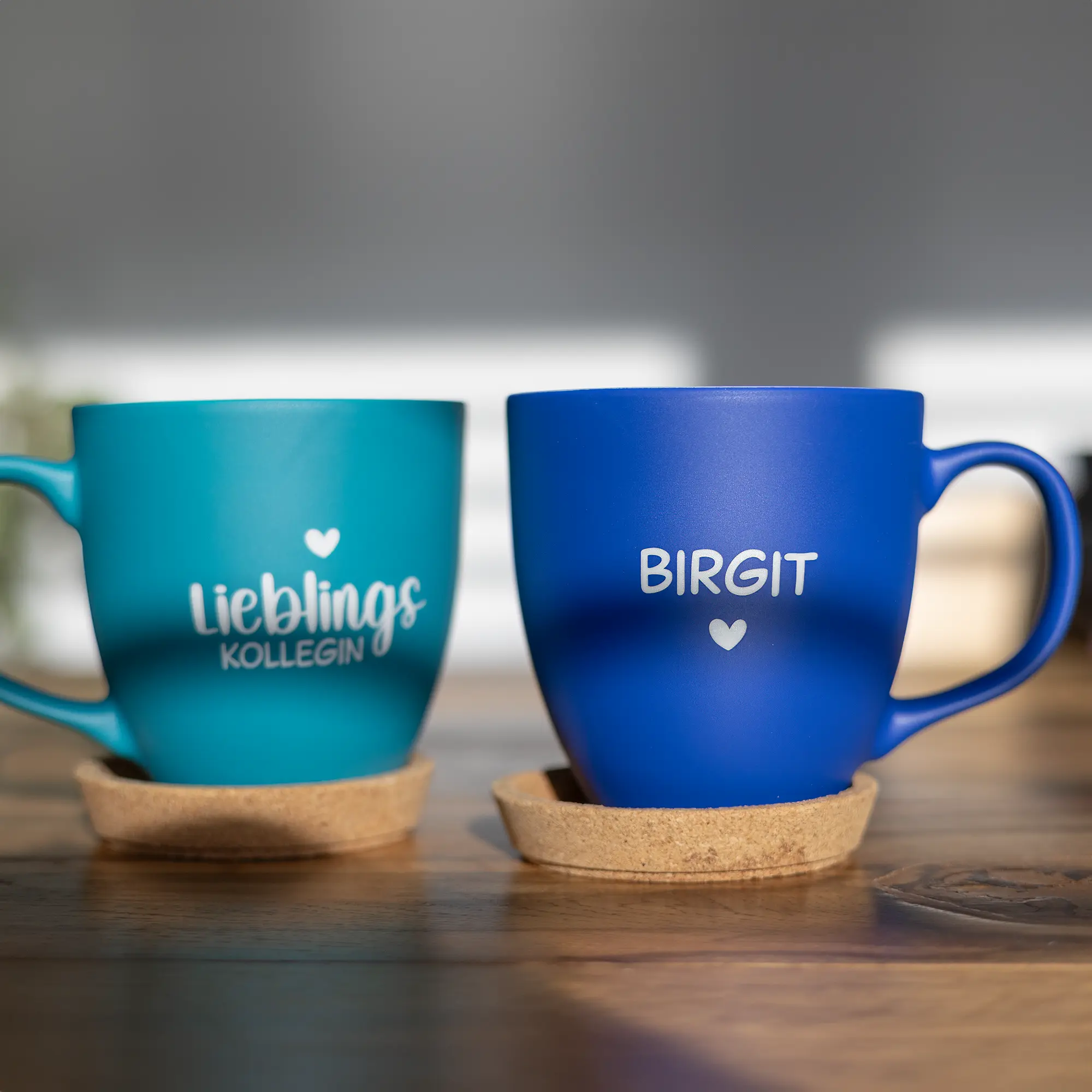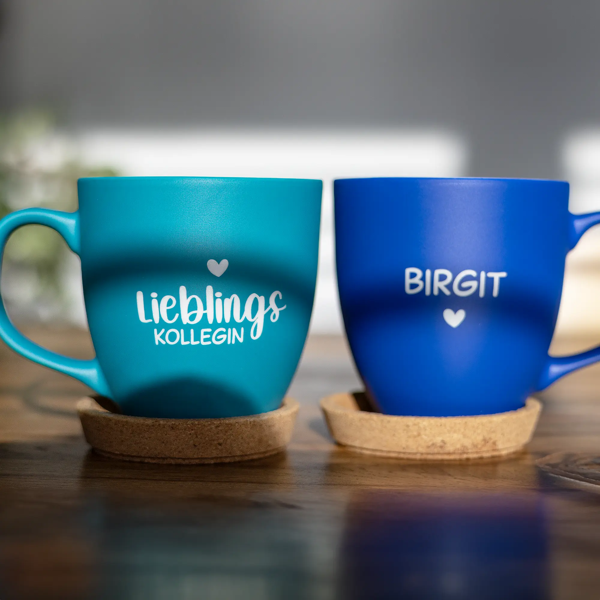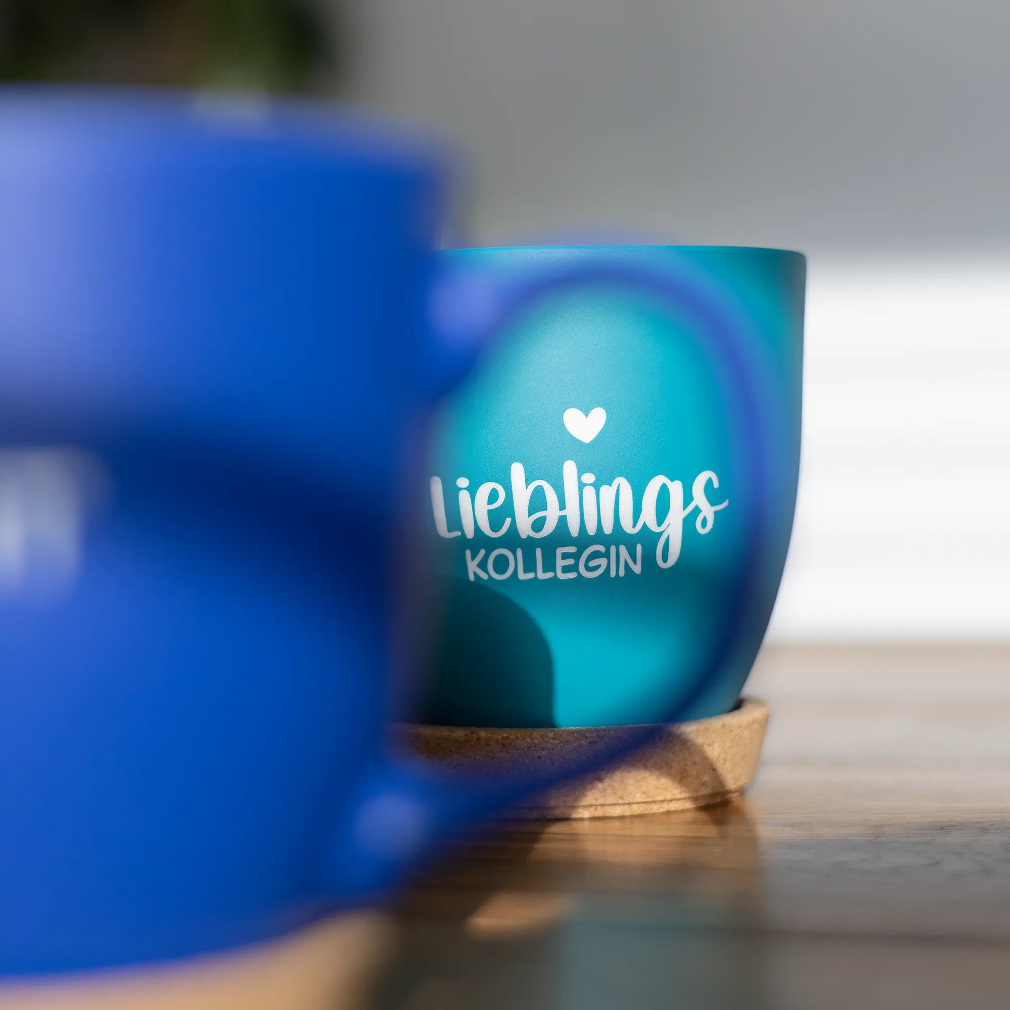 Macht eurer Lieblingskollegin oder eurem Lieblingskollegen eine ganz besondere Freunde für den Arbeitsplatz. Mit unserer personalisierten Tasse „Lieblingskollegin“ (Lieblingskollege) aus hochwertigem Porzellan habt ihr die Möglichkeit eure Kollegen auf der Arbeit auf eine ganz besondere und persönliche Weise zu überraschen. Die personalisierte Tasse aus hochwertigem Porzellan überzeugt hierbei nicht nur mit einer Füllmenge von 450 ml, sondern auch durch eine Vielzahl an Farben, welche euch zur Auswahl stehen, damit ihr auch die Lieblingsfarbe der zu beschenkenden Person findet. Abgerundet wird dies durch die feine Gravur mit dem schönen Schriftzug „Lieblingskollegin“ oder „Lieblingskollege“ sowie auf Wunsch eine kleine Botschaft auf die Rückseite der Tasse. Dadurch zeigt ihr mit eurem Geschenk nicht nur mit wem ihr am liebsten die Arbeitszeit verbringt, sondern könnt das Geschenk zusätzlich noch individuelle und persönlicher gestalten. Somit könnt ihr euren liebsten Kolleginnen und Kollegen eine ganz persönliche Freude machen und Ihnen die Arbeitszeit bei Kaffee, Tee oder einem anderen warmen Getränk verschönern.