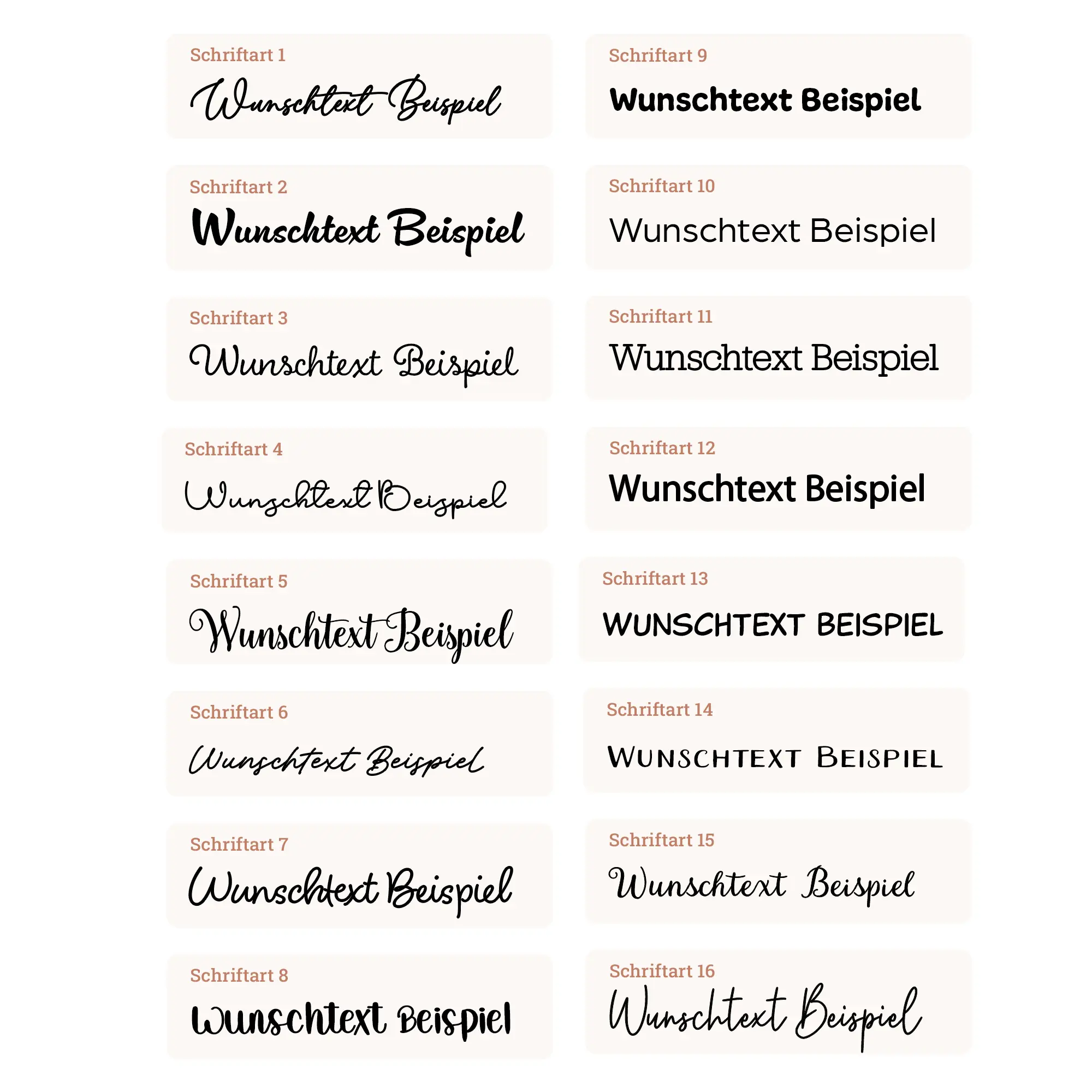 Für die Gravur stehen euch 16 unterschiedliche Schriftarten zur Verfügung. Diese sind untereinander kombinierbar und somit könnt ihr auch eine Tasse als Beispiel mit 2 Schriftarten gestalten lassen. Hierzu findet ihr auch eine kurze Anleitung in unserer Produktgalerie. Bei besonderen Wünschen für die Gravur und die Personalisierung könnt ihr euch auch bei uns per E-Mail nach der Bestellung wenden. Gerne unterstützt euch unser Team bei der Gestaltung eurer personalisierten Tasse. Des Weiteren habt ihr die Möglichkeit, neben der Auswahl der Tasse für Rechts- oder Linkshänder auch beidseitig gravieren zu lassen. Hier kann entweder der gleiche Text oder zwei unterschiedliche Gestaltungen auf eine Tasse graviert werden. Für Motive oder andere Gestaltungsvarianten wie das Einbauen kleiner Icons bitten wir euch auch, uns vorher Bescheid zu geben, damit wir schauen können, was möglich ist, damit ihr die gewünschte Keramiktasse mit der richtigen Wunschgravur erhaltet.