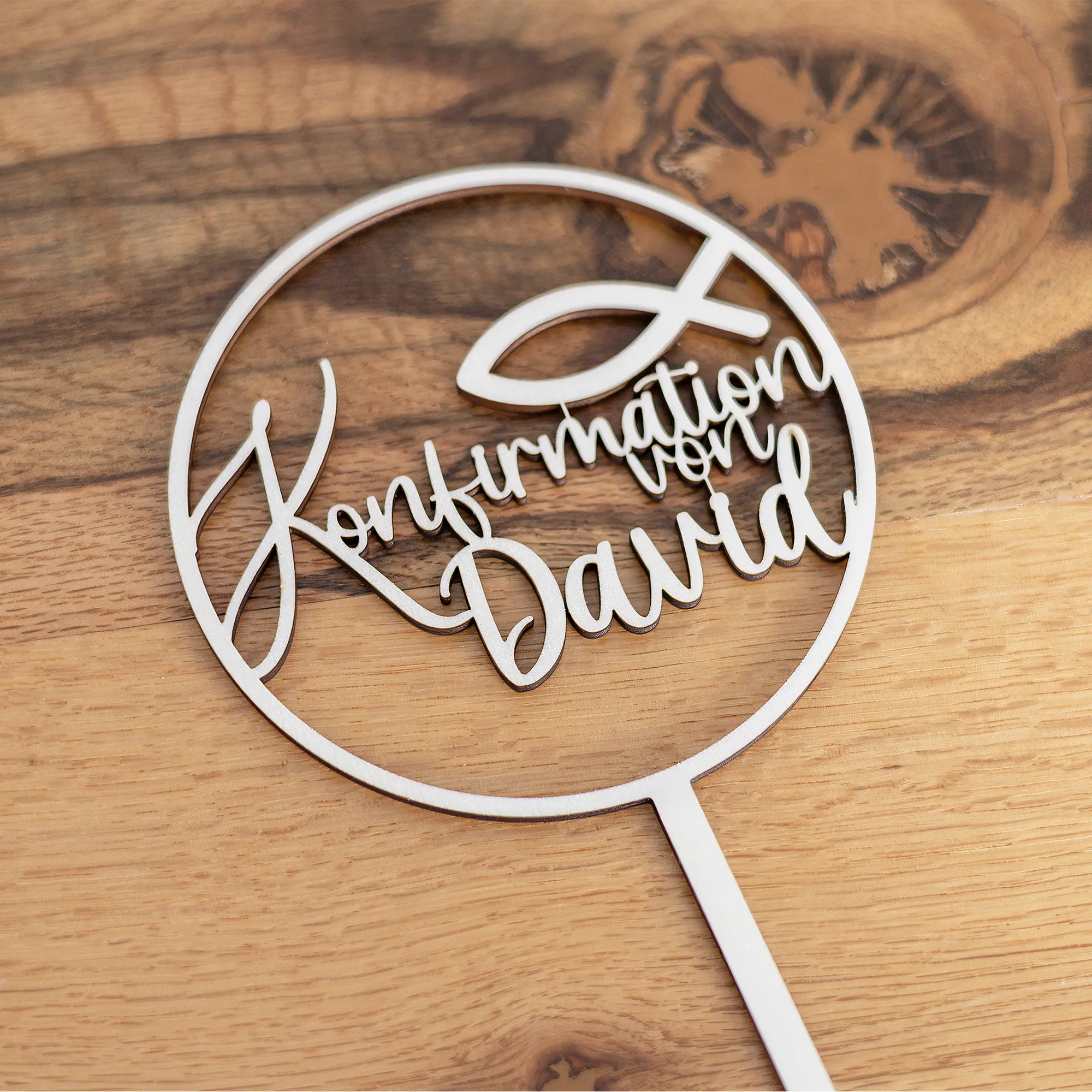 Die Konfirmation ist ein besonderer Meilenstein im Leben eines jungen Menschen und sollte mit liebevollen Details – sowohl in der Dekoration als auch bei den Geschenken für das Konfirmationskind – gefeiert werden. Unser personalisierter Caketopper „Konfirmation von“ mit dem christlichen Fischsymbol ist mehr als nur eine Tortendekoration – er ist ein handgefertigtes Andenken an diesen bedeutsamen Tag. Aus natürlichem Pappelholz gefertigt und präzise gelasert, trägt dieser Kuchenstecker den Namen des Konfirmationskindes und macht jede Torte zu einem persönlichen Highlight.