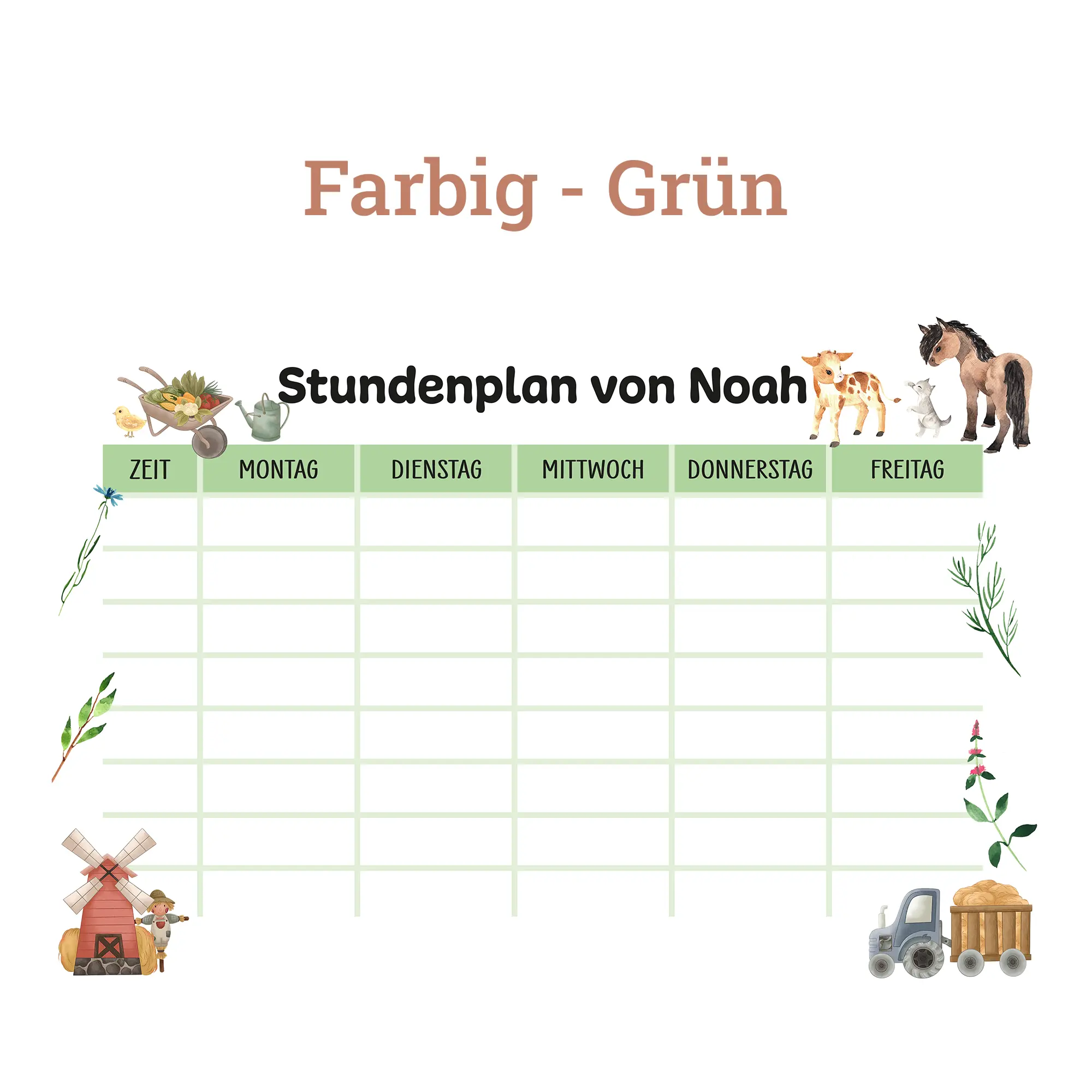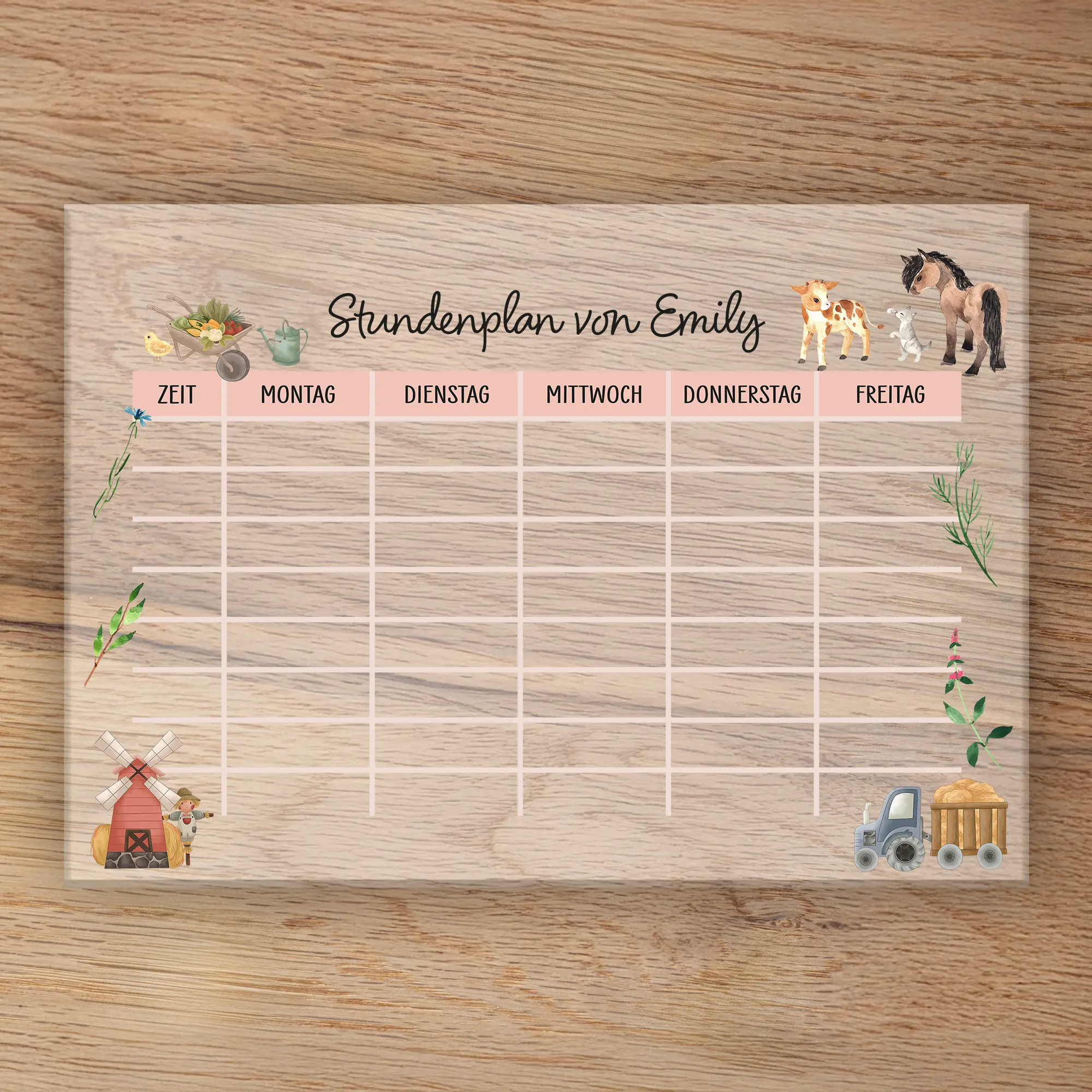 Individueller Stundenplan aus Acrylglas – Personalisiert für Mädchen und Jungen mit Bauernhof Motiven