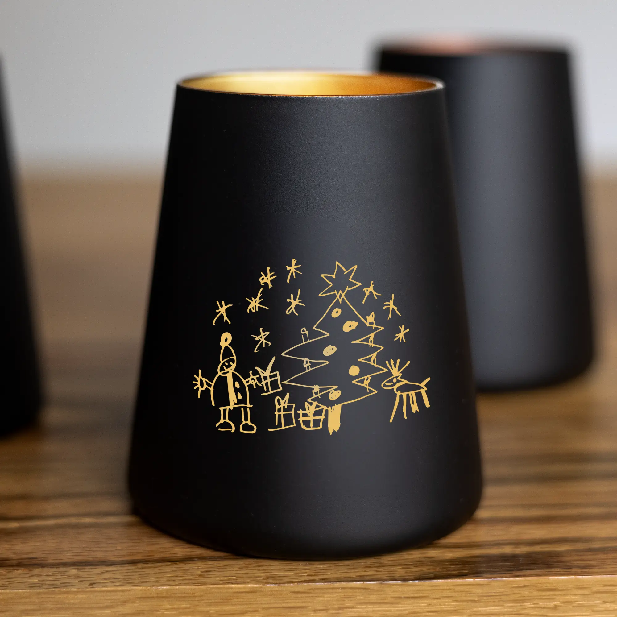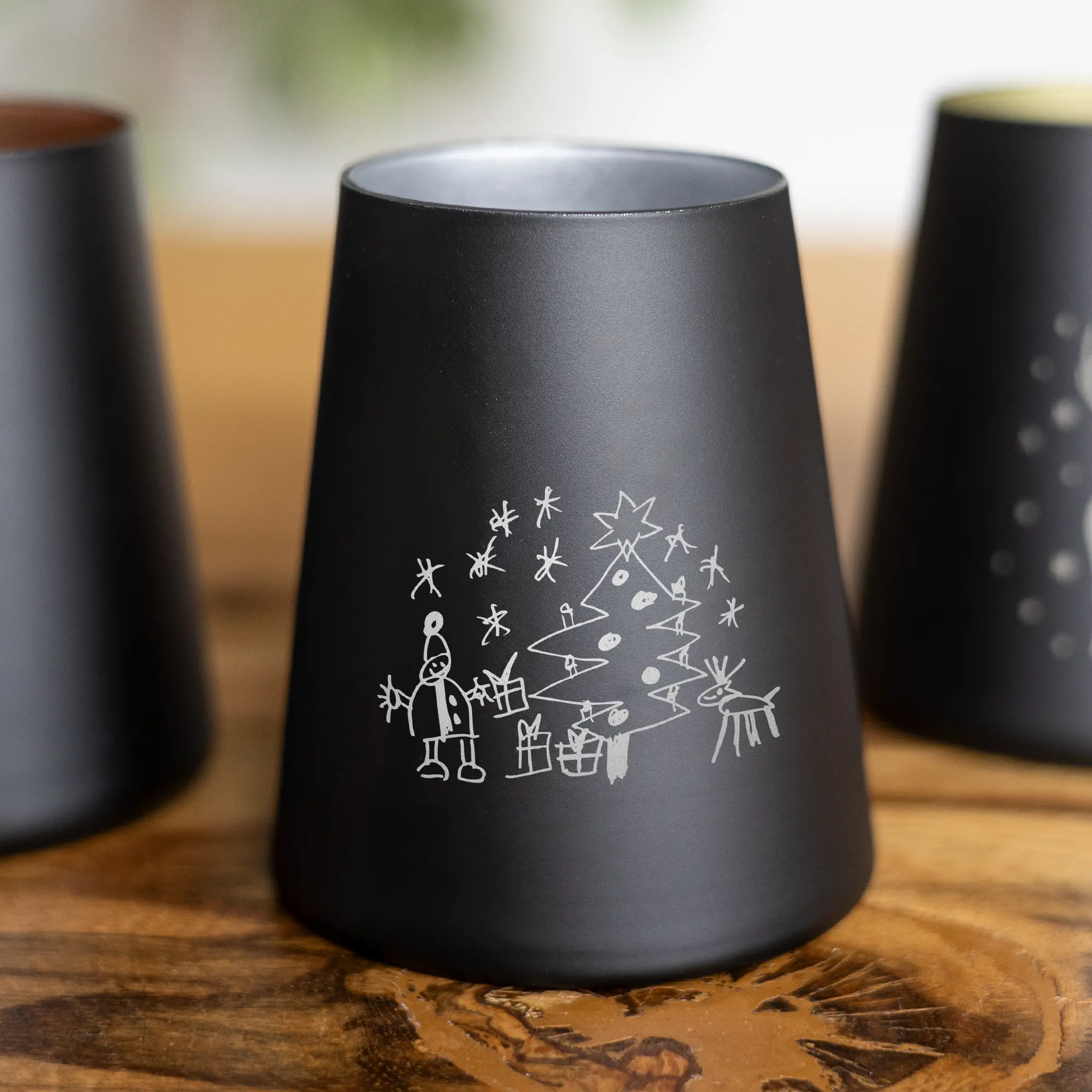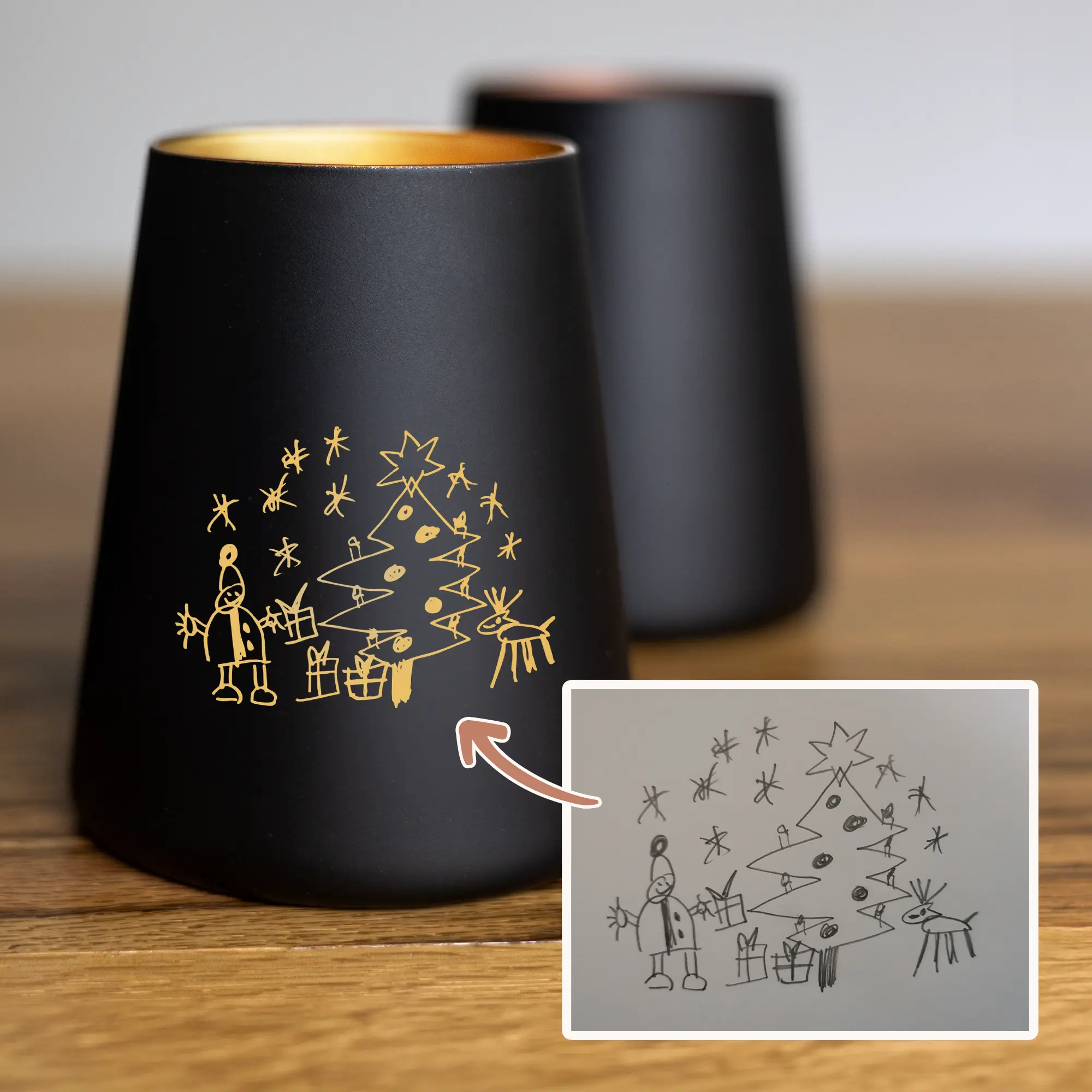 Das personalisierte Windlicht mit euren Kinderzeichnungen als hochwertige Gravur auf dem trapezförmigen Glas ist ein mehr als persönliches Geschenk an eure Freunde, die Familie sowie Paten- und Großeltern. Gemeinsam mit der Zeichnung eurer Kinder, welche mittels Lasergravur auf das Windlicht graviert wird, könnt ihr zudem kleine Sprüche, Nachrichten oder Namen zusätzlich gravieren lassen. Dies macht das individuelle Kerzenglas mit der ganz besonderen Gravur zu einem Unikat, welches den Beschenkten große Freude bereiten wird. Mit einer LED-Kerze oder einer kleinen Lichterkette wird das Windlicht von innen beleuchtet und das Licht scheint sanft von innen nach außen.