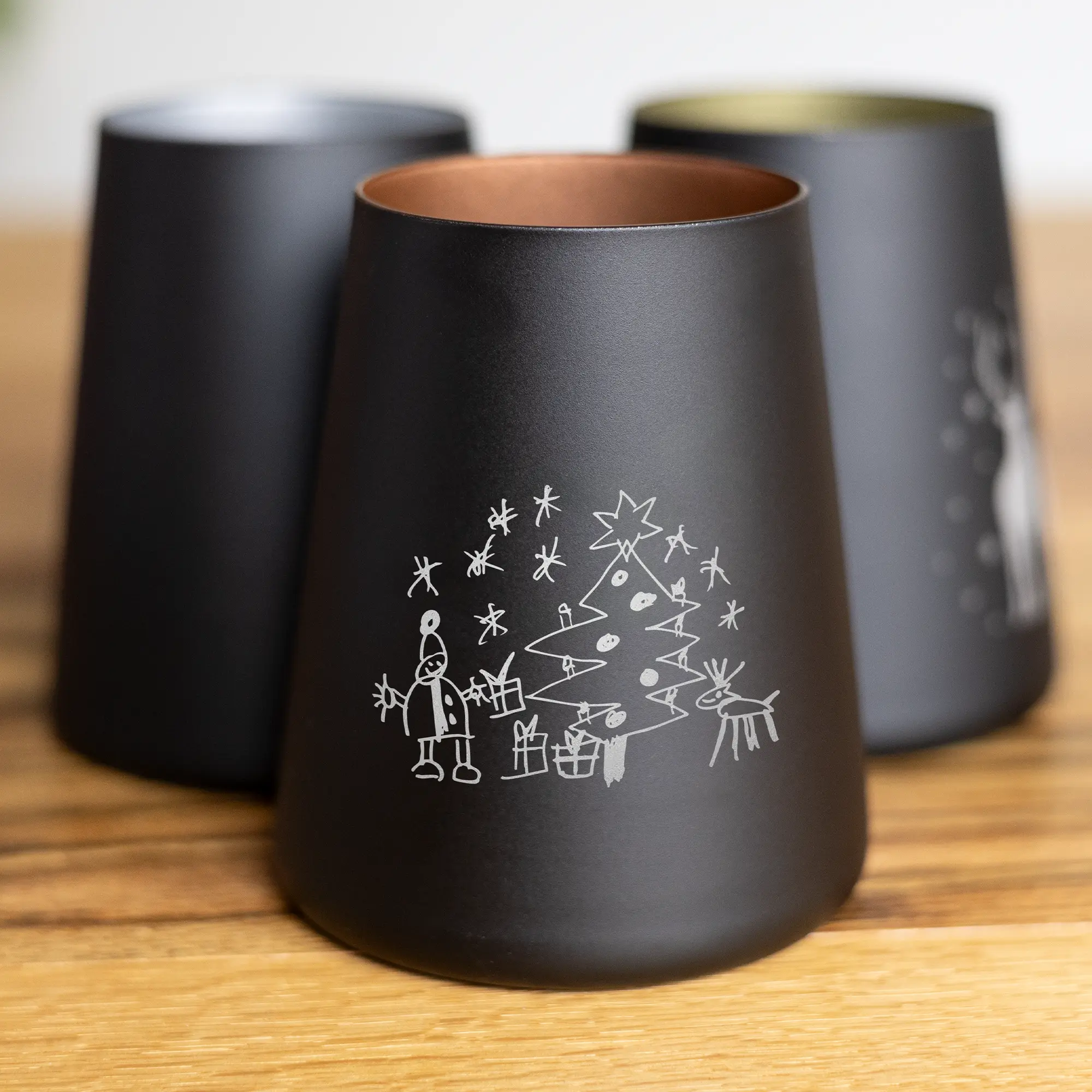 Bei der Gestaltung der Gravur könnt ihr uns wie bereits erwähnt einfach die Zeichnung eurer Kinder zuschicken. Wir wandeln diese Zeichnung dann in eine Vektordatei für euch um, damit diese einfach und problemlos auf das Glas graviert werden kann. Zusätzlich stehen euch auch zwölf verschiedene Schriftarten zur Verfügung, damit ihr euer personalisiertes Glas mit einer zusätzlichen Wunschgravur weiter individualisieren könnt. Auch sind wir in der Lage, mehrere Zeichnungen auf ein Windlicht zu gravieren. Teilt uns hierfür bitte eure Motiv- und Gravurwünsche mit, wenn ihr uns die Bilder per E-Mail zusendet. In diesem Falle werden wir euch zeitnah einen Gravurvorschlag erstellen und zukommen lassen.