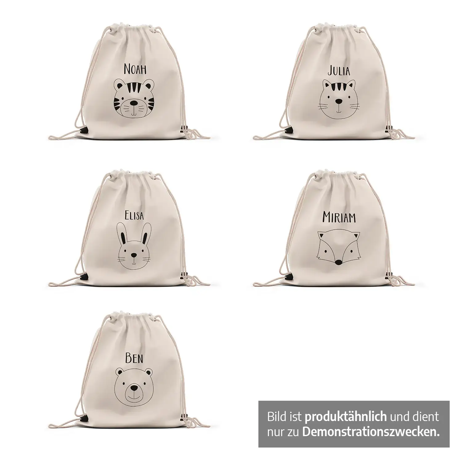 Wie bereits erwähnt, eignet sich der personalisierte Turnbeutel für den Schulsport, Outdoor-Akvitiäten oder auch, nur wenn es darum geht, die Freunde zu besuchen und ein paar Kleinigkeiten oder Schlafsachen für eine Übernachtung mitzunehmen. Durch die Auswahl der verschiedenen Tiermotive wie Bär, Fuchs, Hase, Katze und Tiger und der verschiedenen Farben für den Turnbeutel habt ihr viele Möglichkeiten, die Stofftasche nach eurem Belieben oder dem Geschmack eures Kindes zu gestalten. Zudem sind die Motive für Jungen und Mädchen geeignet und können je nach Lieblingstier ausgewählt werden.